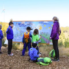 Zwischen den Stationen begleiten Quiztafeln mit Fragen und Antworten rund um die Windenergie den Wanderer.