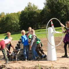 Am Ende wartet ein kleiner Spielplatz, wo Kinder ausprobieren können, wie ein Pumpspeicher-Kraftwerk funktioniert.