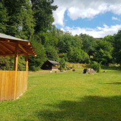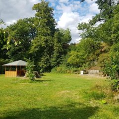 Hier findet man eine Hütte mit teils überdachten Sitzplätzen und ein aus Bruchsteinen gemauerter Grill, Der Grillplatz bietet Sitzmöglichkeiten für ca. 10 Personen mit Tischen und Bänken. Eine große Rasenfläche ermöglicht Spiele im Freien und ist daher sehr gut für Gruppen und große Familien geeignet. Zudem ist eine Feuerstelle für ein Lagerfeuer vorhanden.