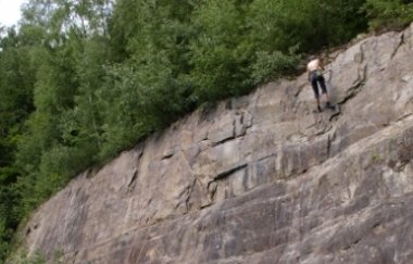 Kletterfans und auch solche, die es werden wollen, finden im Cratzenbacher Steinbruch ein überschaubares Trainingsfeld. Weil die knapp 10 Meter hohe Schieferwand aufgrund ihrer Neigung nicht sehr viel athletische Ausdauer verlangt, sind Anfänger hier besonders gut aufgehoben.