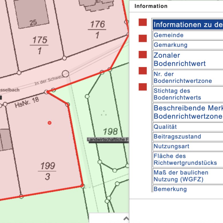 Beschreibende Merkmale der Bodenrichtwertzone Qualität: Baureifes Land Beitragszustand: erschließungsbeitragsfrei, Nutzungsart: Wohnbaufläche Fläche des Grundstücks: 812 m², Ein Teil des Grundstücks wurde bisher als Garten genutzt.Kontaktdaten